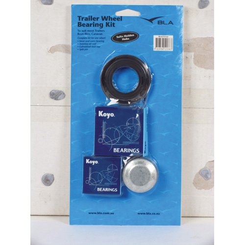 Complete kit for one wheel includes inner and outer bearing, stainless steel housed grease seal, galvanised dust cap and split pin.