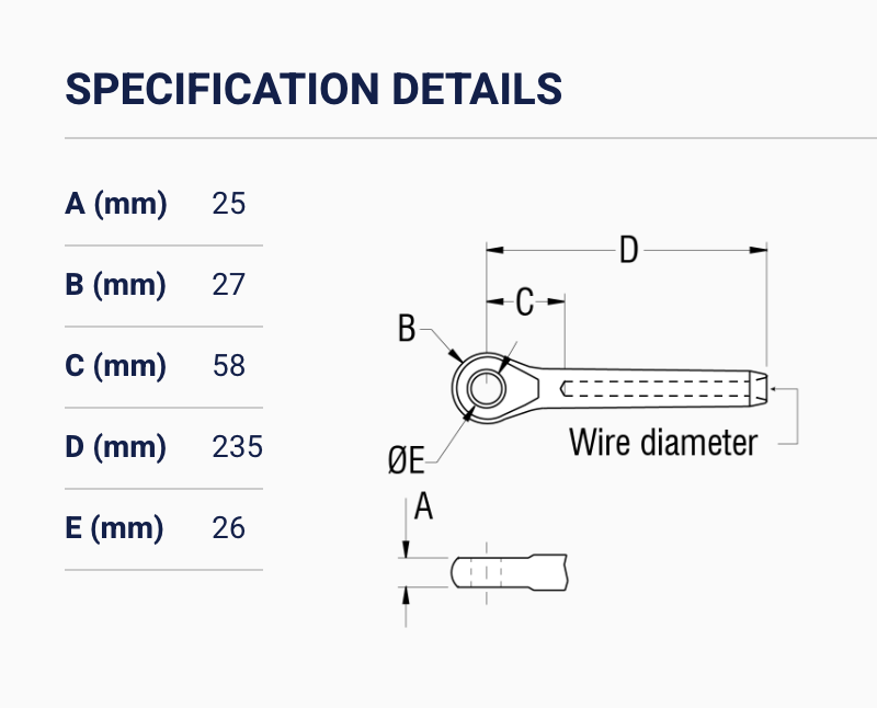 - Metric wire: 2.5mm - 26mm