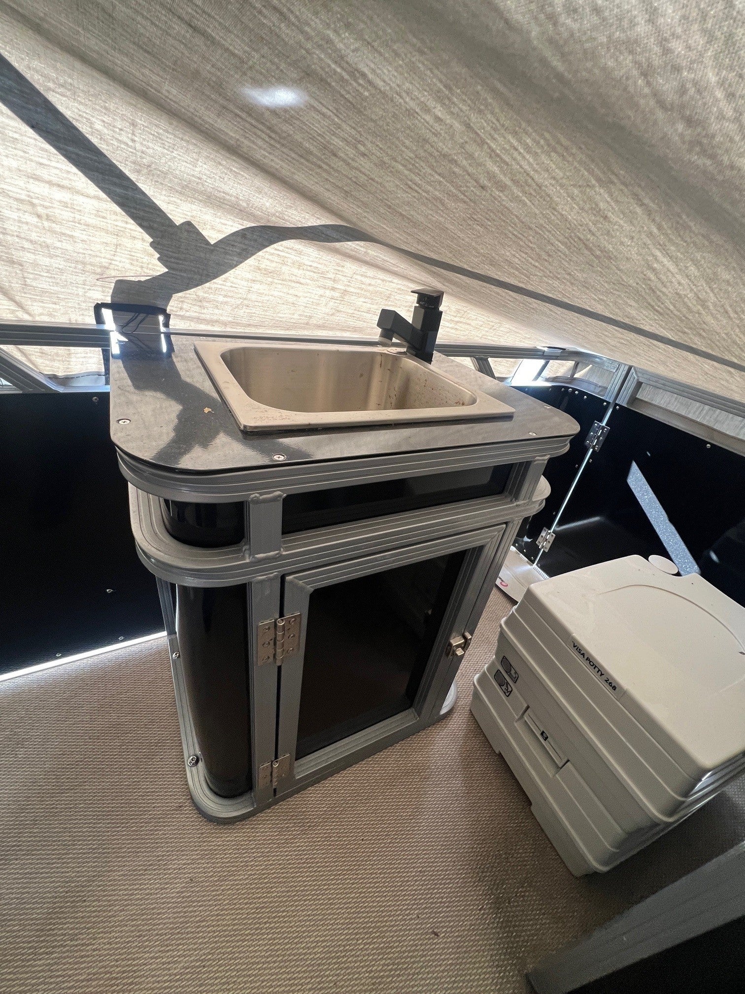 ✅ Sink with pump, table, and cup holders galore – entertain with ease