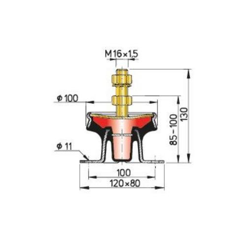 This hydro-damper is a combination of a conventional rubber-metal damper and a hydraulic shock absorber. Its reduction of vibration and noise is truly amazing. The maximum static load per support is 60 kg and the maximum thrust 50 kg.