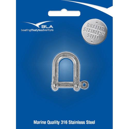 Standard 'D' Shackle - Stainless Steel Captive Pin (Bulk Packed Item) - QTY: 10 - Pin Dia: 8mm