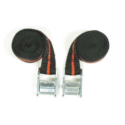 General purpose webbing tie down with diecast cam action tension and release device. 1.7m x 25mm webbing. Sold as a pair.