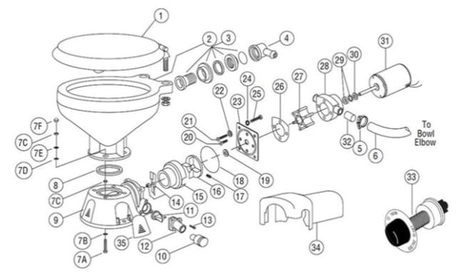JABSCO REPLACEMENT MOTOR FOR PREMIUM SERIES 37010 TOILETS 12V