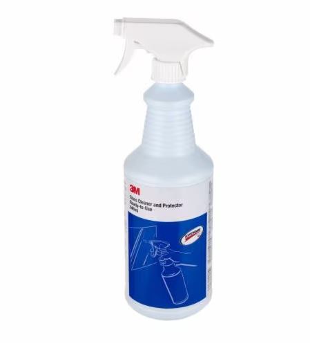 3M™ Glass Cleaner and Protector, Ready-To-Use is an ammonia-free spray that cleans and protects glass for a faster, longer lasting shine. It makes light work of fingerprints, lipstick and even permanent marker. It’s the first commercial glass cleaner made with Scotchgard™ Protection to reduce fogging on mirrors and other glass surfaces.