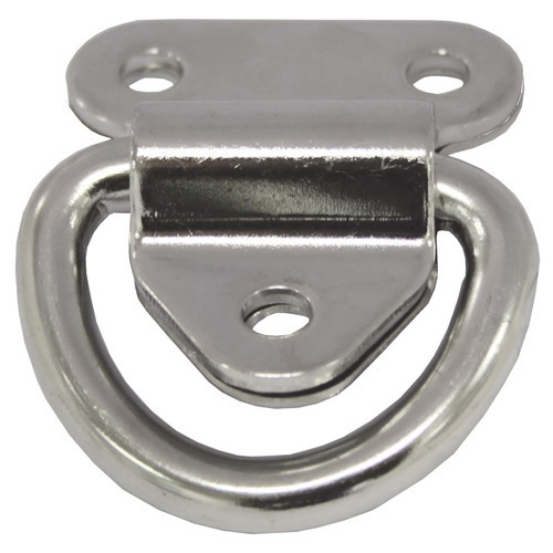 304 grade pressed stainless steel eye plates with two piece body and dee ring that folds down and is only 14mm high, when not in use. Two dee ring diameter sizes.