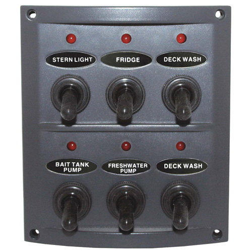 Splashproof Grey 6 Switch Panel with Red LED Indicators