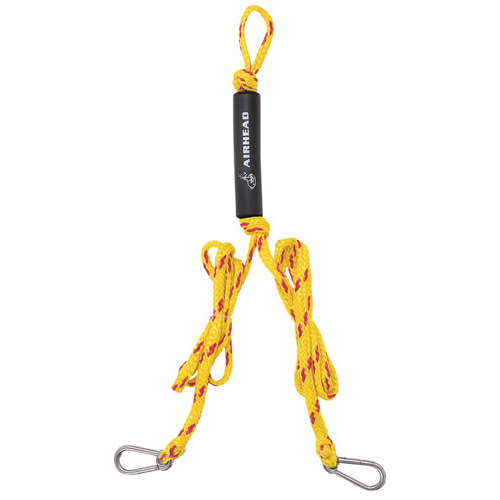 If your boat isn’t equipped with a pylon or ski eye and you enjoy watersports activities, you need a tow harness. It creates a tow attachment point at the centre of your boat, behind your outboard or stern drive. This tow harness is perfect for pulling a skier, wakeboarder, knee boarder or 1 rider tubes. Simply clip it onto your boat with the hooks provided, and attach your ski or tube rope. A 15cm float keeps the attachment loop floating on top, away from your propeller. 3.6m long to fit larger boats and pontoons. Snap hook opening width 1.1cm. Yellow / Red.