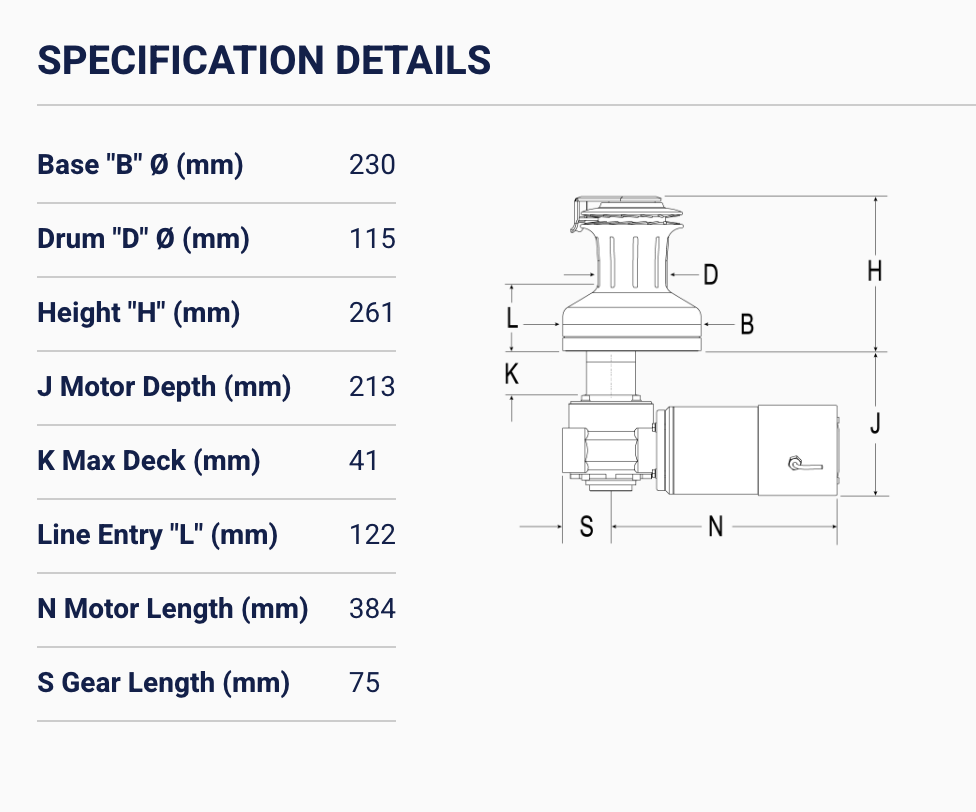 - Self-Tailing Electric Winches - E1 Single Speed Motor,