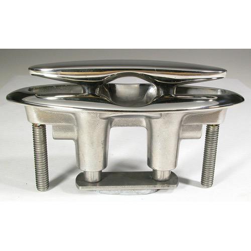 Cast 316 grade stainless steel construction, flush mount, pull up - push down, horn cleats. Adjustable movement friction, ensures that cleats remain firmly in the up or down position. Supplied with mounting studs, nuts, washers and backing plate to suit 12mm to 50mm thick decks.