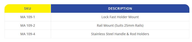 - Two Mounting Options: Select from a rail mount (for 25mm railings) or a Lock Fast Holder Mount for versatile installation. The Lock Fast option provides the convenience of easy removal and reinstallation of the bait board as needed.