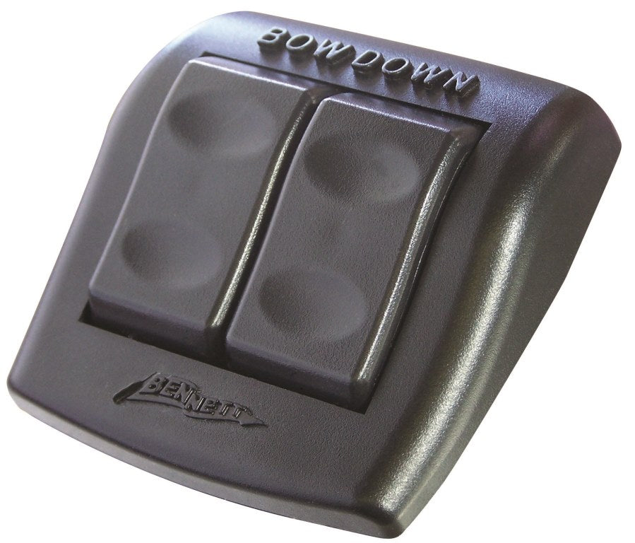 Bennett Trim Tabs are two independent, stainless steel, adjustable after-planes attached to the bottom edge of the transom. They are designed to improve lift and stability, greatly enhancing the boating experience. When the hem control is pressed, the trim tabs move into position. Water force on the trim tab surface creates upward pressure, raising the stern and lowering the bow.