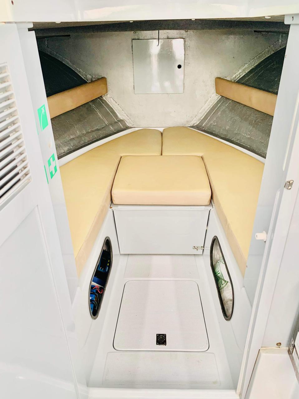 V-berth with infill cushions (large king berth) & chemical toilet