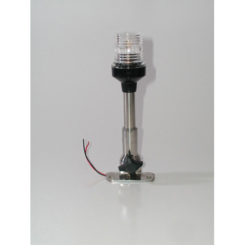 360º clear dioptic lens. Stainless steel poles, cast stainless steel bases. 121336 has a two pin socket base with splash proof cover to protect connections when pole is removed. 121335 has a folding base. 12 volt bulb.