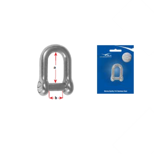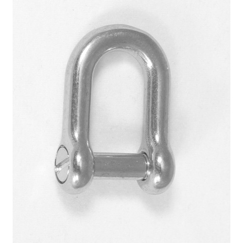 316 grade stainless steel ‘D’ shackle. Screw in pin with countersunk slotted head.