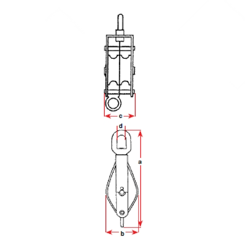 Heavy duty, stainless steel trawl blocks with double, brass bushed stainless sheaves and swivelling bale head. Pressed cheeks. Heavy duty cast load straps. Through bolted construction allows the block to be dismantled for installation and servicing. Welded ring becket.