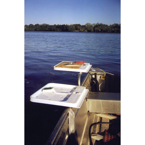 Injection moulded from U.V. stabilised high density polyethylene. Ideal for cutting up bait or scaling and filleting your catch. Features integral knife holder, 40cm ruler, moulded drains for ease of cleaning (which can also be used for berleying) and full stainless steel mount hardware to suit rail or gunwale mount.