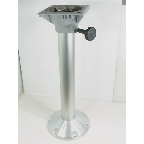These popular pedestals have a heavy duty cast-aluminium base, with six mounting holes for solid support on cockpit or cabin floor. The post is 73mm in diameter and is fitted with a friction locking swivel. Anodised aluminium finish base and pole, powder coated cast alloy head assembly. Three heights available but can be easily cut down if a lower seating height is required.