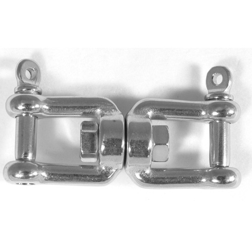 Cast 316 grade stainless steel fork and fork swivels. Welded nut pivot bolt. Drilled jaw pins for security tie wire. Not SWL rated for lifting purposes.