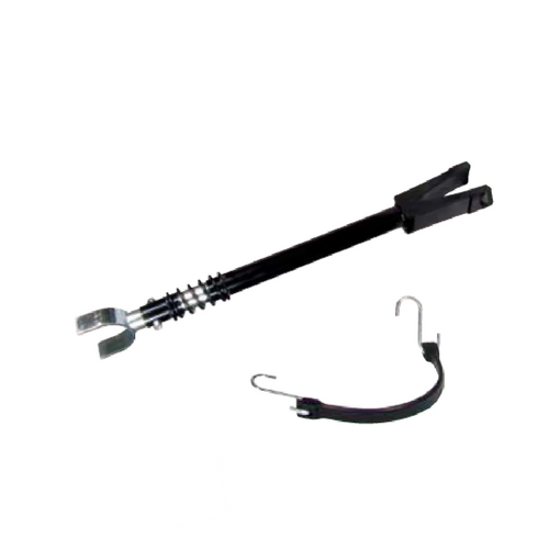 Save wear and tear on the outboard pivot bracket and transom mounts with this trailer to outboard motor support. Soft poly 'V' holds motor leg and spring tube provides support, yet absorbs impact shocks. Metal yoke at base locks onto trailer rear beam, without requiring a special mount bracket. Support has an adjustable length of 520mm to 780mm. Supplied complete with 300mm rubber strap. Suits up to 150HP motors.