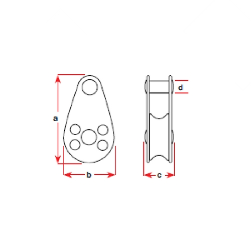 Stainless steel cheeks with single black nylon sheave. Choice of rivet top or removable clevis pin.