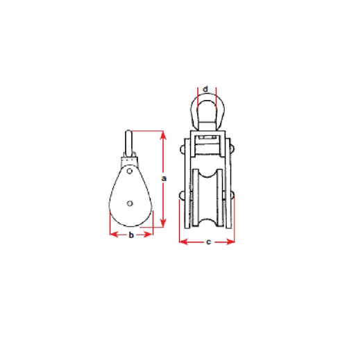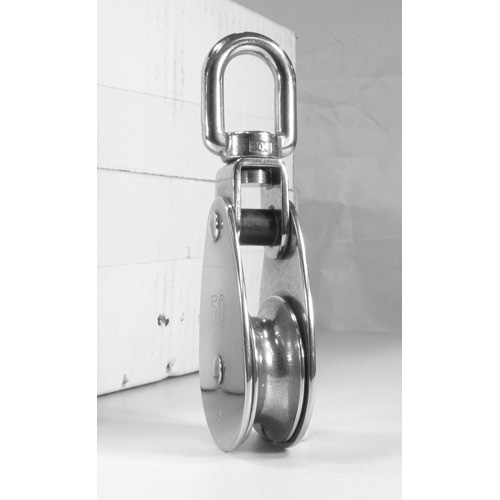 Stainless steel cheek blocks with choice of single, brass bushed stainless steel or nylon sheave. Swivelling bale head. Heavy construction for commercial applications.