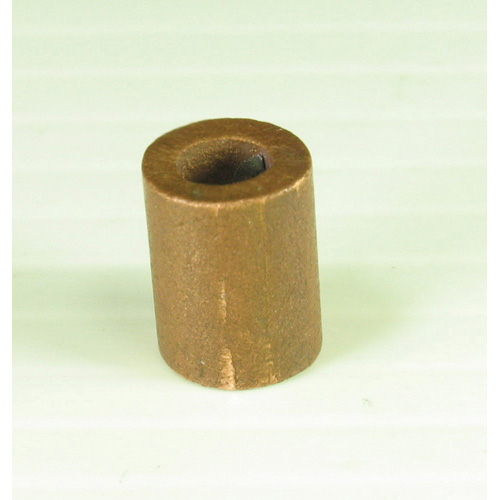 Extruded copper swage with single hole, used to produce an end stop on stainless steel wire cables.