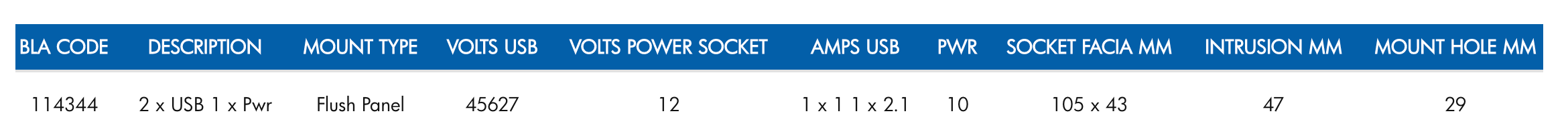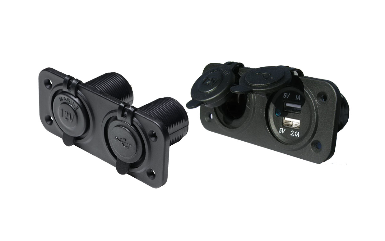 - Features two USB sockets, 1 x 1 Amp and 1 x 2.1 Amp as well as a one common power socket designed to charge a wide range of appliances. The two USB sockets are ideal for iPhones, iPods, iPads and other compatible smartphones and devices. The popular 10 Amp power socket suits a wide range of products including spotlights, chart lights and 12 volt extension cables. The mounting panel may be removed to allow flush mounting of the sockets only.