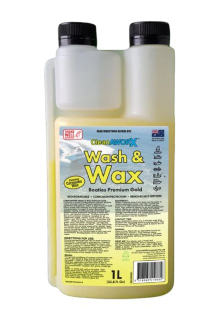 Australian Made, Cleanaworx Boat Wash Clean Wash Protect Your Boat and jetski contains a readily biodegradable polymer additive, which provides improved gloss retention on Gelcoat and paintwork. Cleanaworx Boat Wash and Wax offers streak free cleaning and high beading characteristics to assist in water removal and spotless drying. Continued use of the product will result in improved protection faster dirt, grime and salt removal also reduce the time it takes to wash your boat. use SNOW FOAM GUN APPLICATION. REMOVES SALT DEPOSITS. CORROSION PROTECTION. BIODEGRADABLE.SALTY BOAT WASH