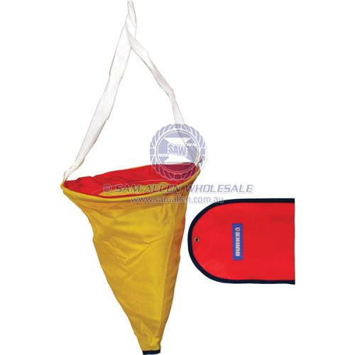 • The weighted drogue's flexible wire hoop springs open when removed from the pouch ready for an emergency.