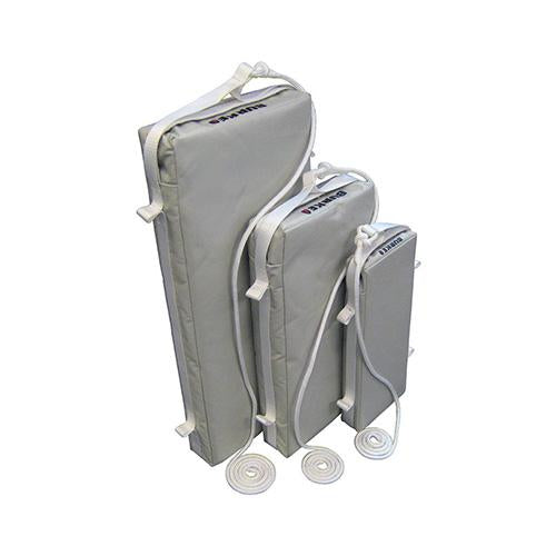 Vinyl-covered Closed Cell Foam with secure Velcro opening. Re-enforced webbing allows vertical or horizontal usage.
