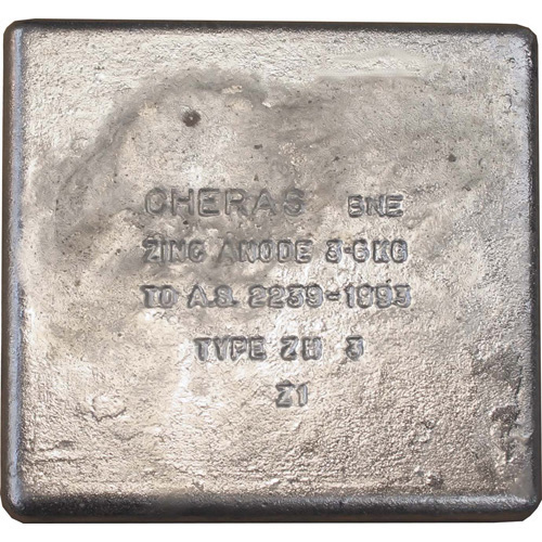Superb quality range of Australian made "CHERAS" brand zinc anodes. These anodes are manufactured from high grade zinc alloy - 99.9% pure - and conform to Australian Standard AS2239 and U.S Military spec. 18001J . They have an excellent clean, presentable finish for open shop display. Each anode has the Australian Standard number, the weight and the anode code number stamped into it for easy identification. A large range of anodes are available to suit most applications.