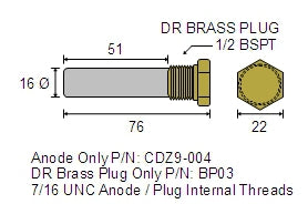 - Consists of our CDZ9-004 pencil anode with Brass plug 03