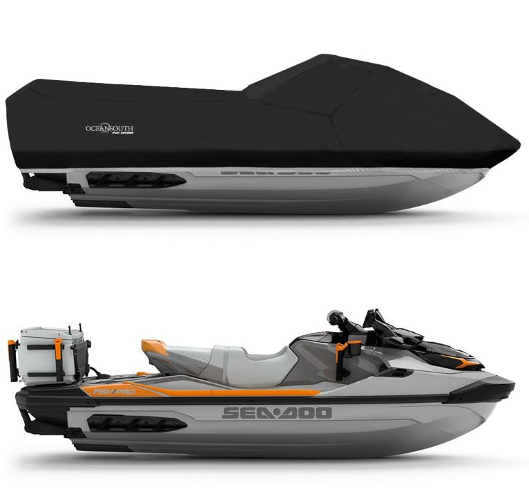 Oceansouth Jet Ski Cover made of 100% Dope dyed polyester fabric 350 g/m2. Offers best fit and the finest protection to your Jet Ski. It is an excellent choice for year round storage or an economical trailerable cover.