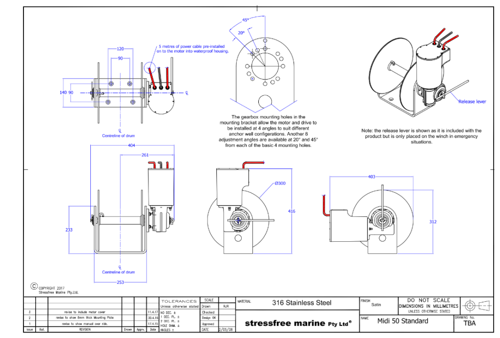 The Stressfree Marine Midi Me Standard anchor winches additionally feature:
