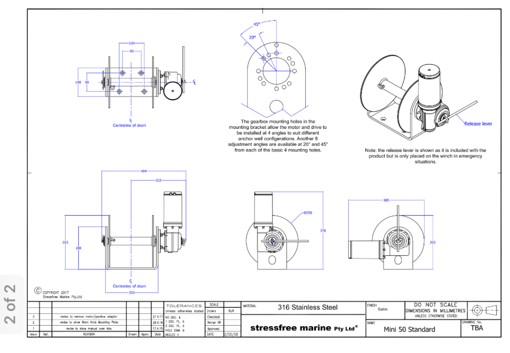 • Adaptable fit and varied mounting options, with the ability to reset the gearbox and motor assembly in 8 different configurations to best suit your anchor well
