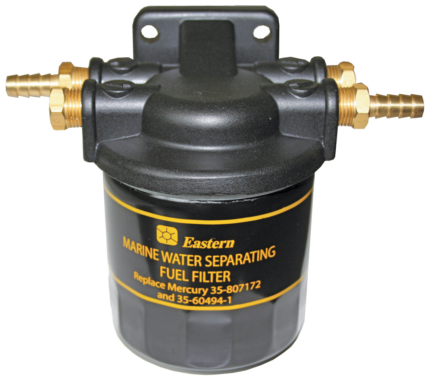 Complete filter assembly efficiently separates 99% of water and removes 98% of small particles from outboard motor fuel. The filter comes as a complete assembly ready for installation and includes -