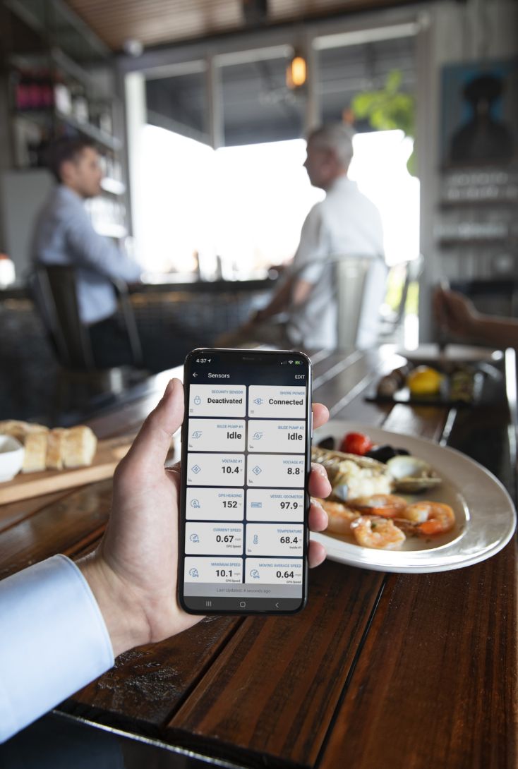 Be the first to know if a security sensor has been triggered, or if your boat has been moved. The internal GPS sensor updates every 15 minutes and will send text alerts1 if your boat leaves the geo-fenced area.