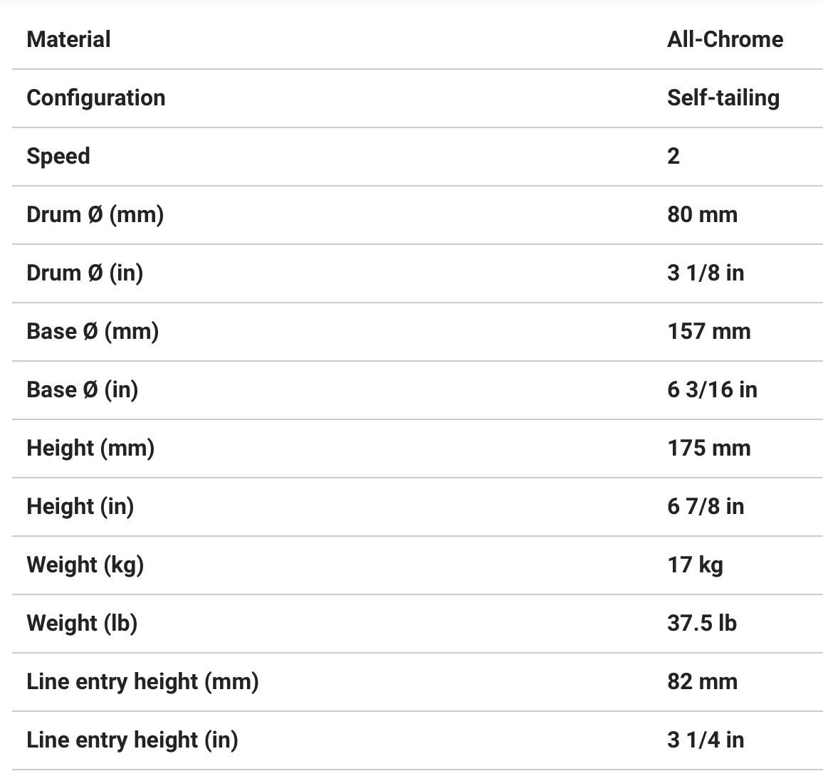 HARKEN 40 Electric Self-Tailing Rewind™ Radial All-Chrome Winch — Reverse Speed, 12V Available power Electric horizontal 12V