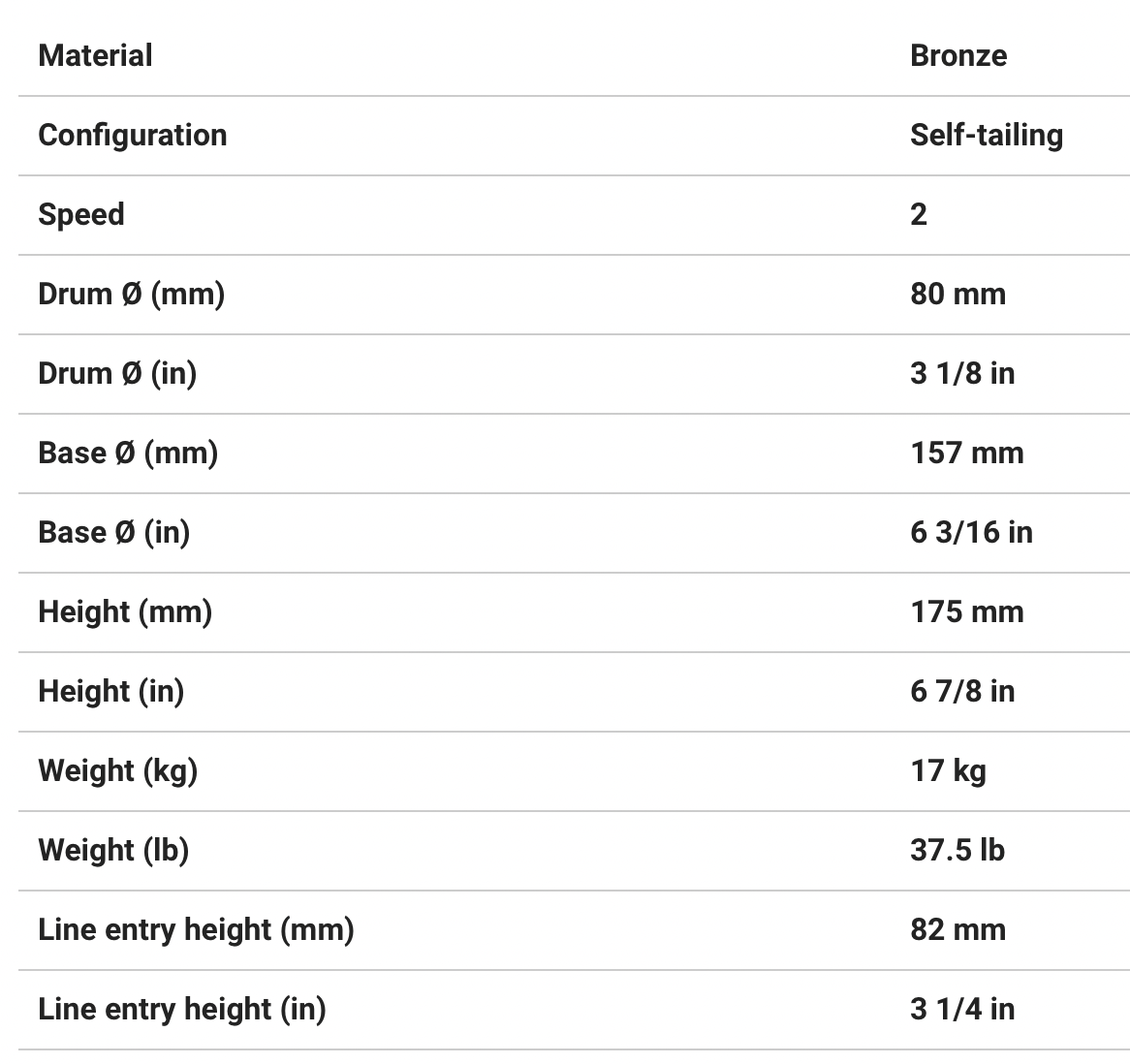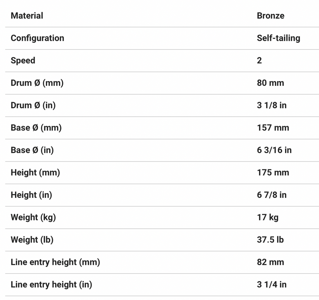 HARKEN 40 Electric Self-Tailing Rewind™ Radial Bronze Winch — Reverse Speed, 12V Available power Electric horizontal 12V