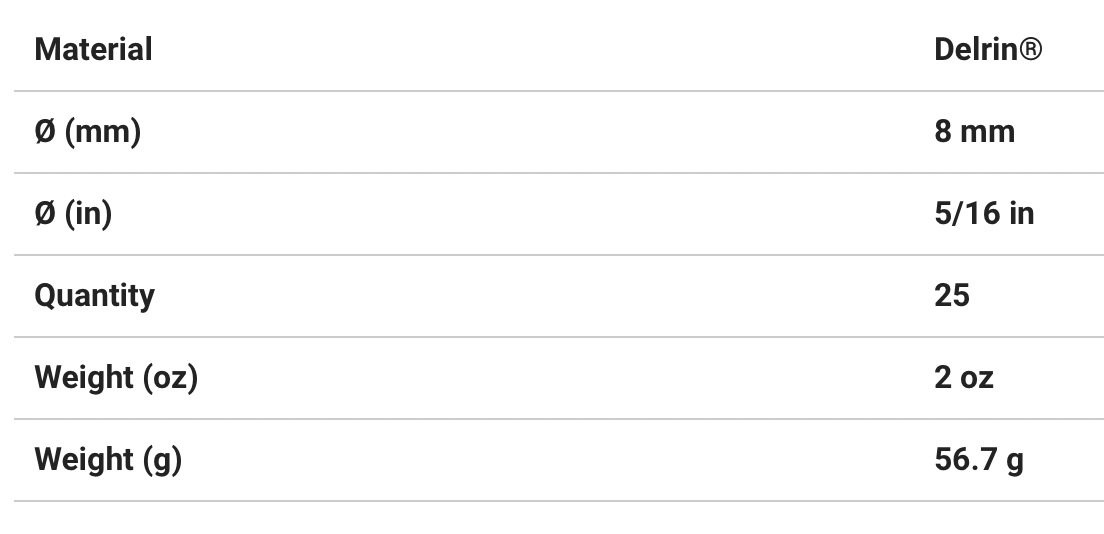 HARKEN 5/16" Delrin Ball Bearing — 25 Balls