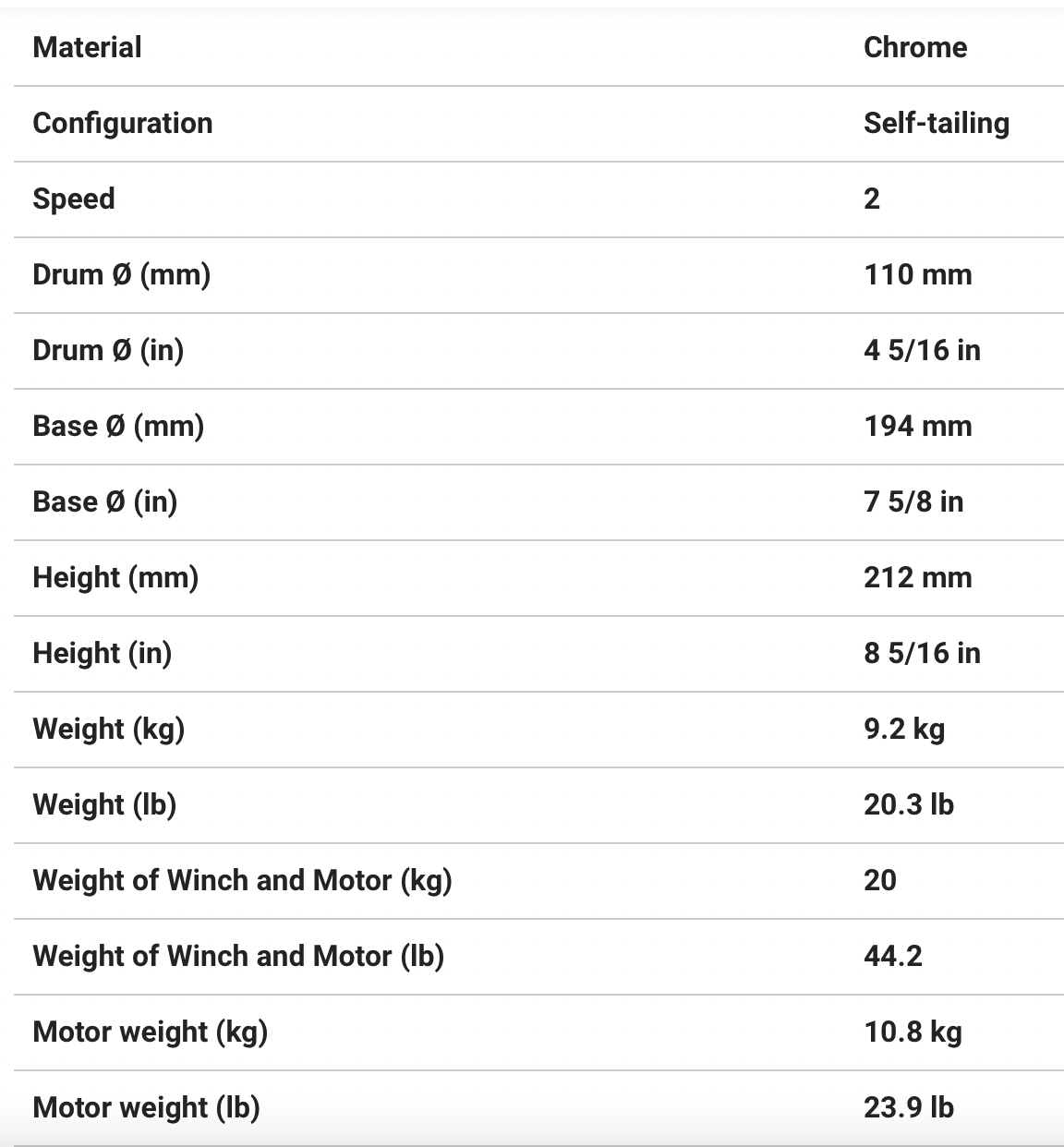 HARKEN 50 Electric Self-Tailing Radial Chrome Winch — 2 Speed, 12V, Horizontal Available power Electric horizontal 12V