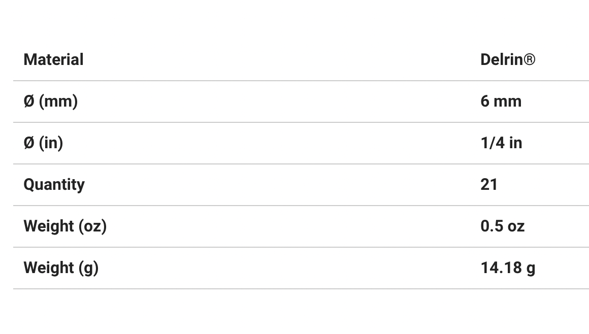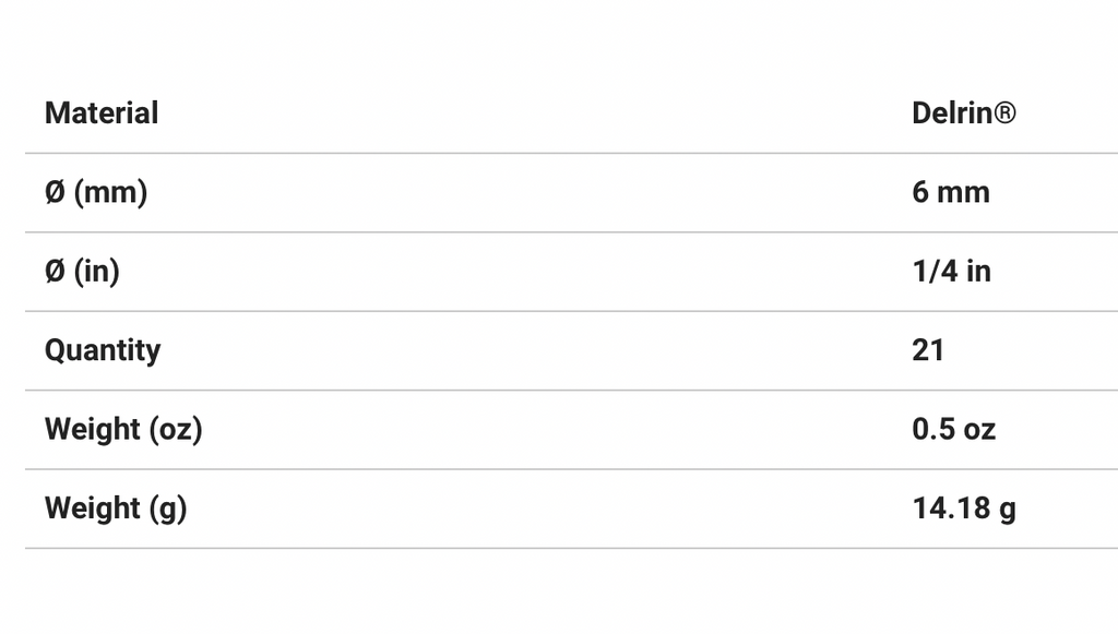 HARKEN Delrin Ball Bearings for Low-Load Cars (bag of 21) - 1-4"