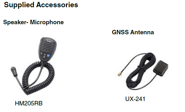 - Supplied speaker microphone, HM-205RB can be connected to the rear panel