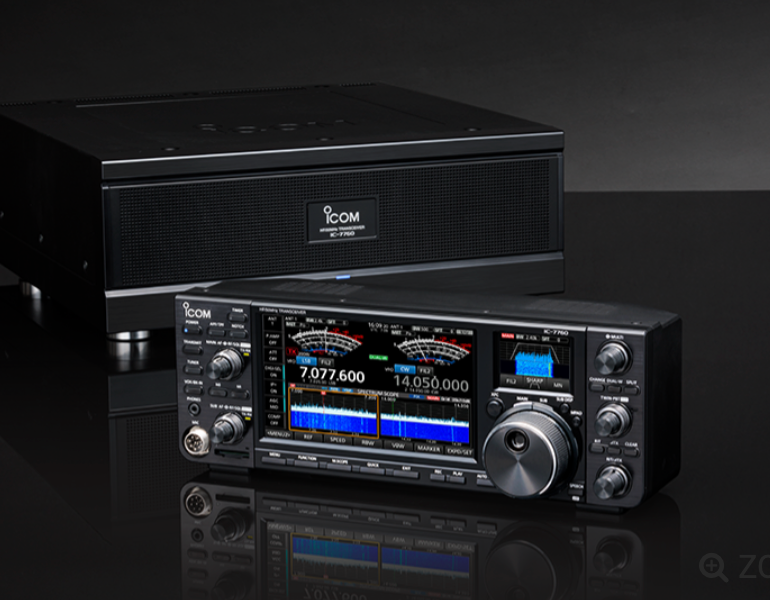The Icom RC-7760 is the optional control head for the IC-7760 HF/50 MHz transceiver, which offers revolutionary remote control capabilities with the new firmware 1.10 (from February 25, 2025). With a compact, user-friendly design and two touchscreens – a 7-inch main display (800 x 480 pixels, WVGA) and a 2.4-inch subdisplay (320 x 240 pixels) – the RC-7760 enables intuitive operation of main and sub receivers as well as spectrum scopes. Two built-in speakers provide the sound.