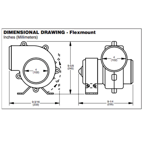 Flangemount type or flexmount in-line design where the blower can be rotated in the bracket to allow discharge in any direction.