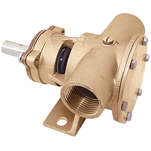 For engine cooling or bilge pump applications. Bronze pedestal pumps with sealed double row angular contact bearings, stainless steel shaft and flexible rubber impeller. Engine driven via pulley and belt.