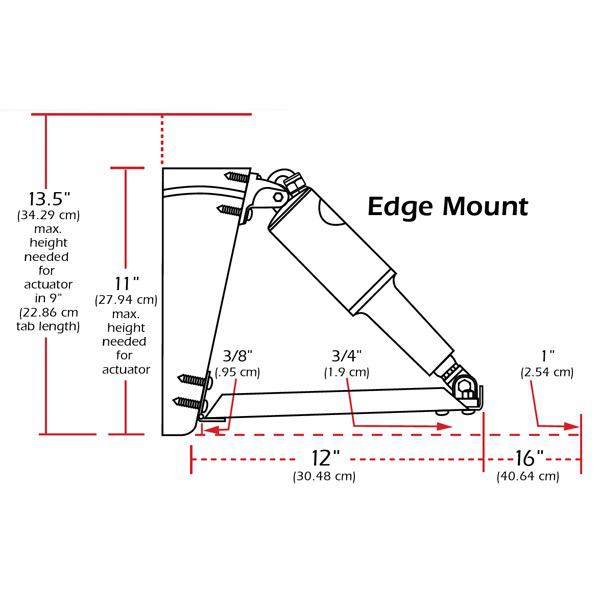 The Edge Mount Trim tab is perfect for boats with a low transom requiring a maximum height of only 11" (280mm) to mount the actuator.