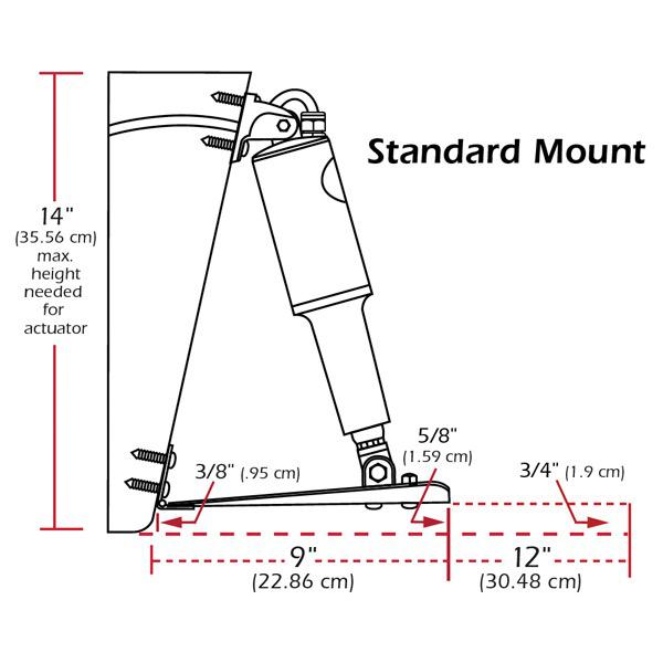 The Standard Mount Trim Tab is perfect for boats with a standard or high transom requiring a maximum height of 14" (356mm) to mount the actuator.