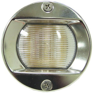 Compact flush mounting 304 grade stainless steel cockpit or transom light with 12v long life LEDs. Supplied with rubber mounting gasket and stainless steel screws. Fully wired for use. No switch supplied. Flush mounting. 12 volt 1.5 watt 90 lumen output. Diameter : 75mm Depth : 38mm