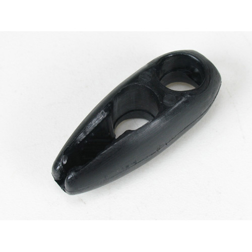 Injection moulded, black plastic. Designed to fasten up to 6mm shock cord in quick release integrated jaws, after forming loop to go around an anchoring point. Commonly used for sail ties, but has many other uses around the boat.